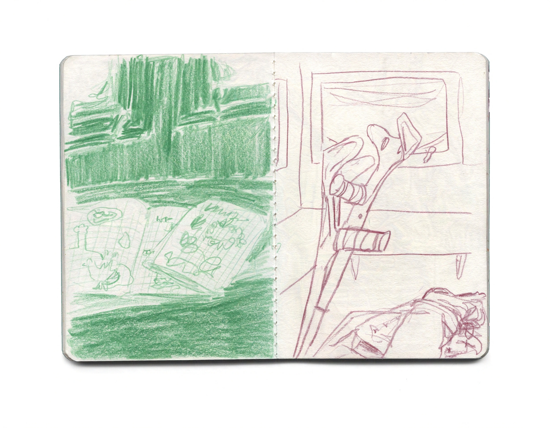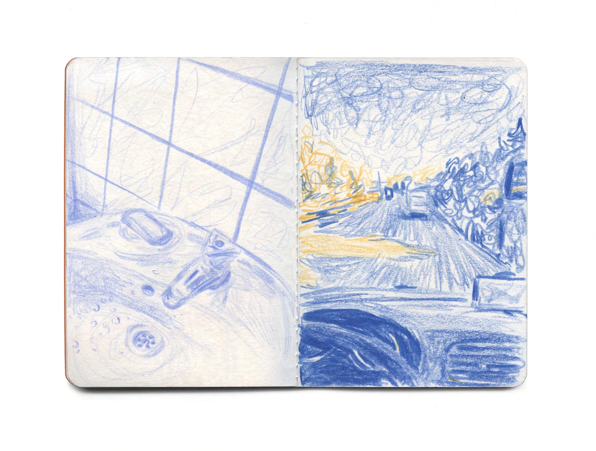 Das autobiografische Skizzenbuch-Projekt Zwischen den Momenten dokumentiert über einen Zeitraum von vier Monaten mittels schneller Buntstiftzeichnungen genau diese oft unbeachtet verstreichenden Augenblicke des persönlichen Lebens: flüchtige Begegnungen, stille Beobachtungen, alltägliche Gegenstände und Räume, Gefühle und Stimmungen. Seine Motive bewegen sich dabei auf einem Spektrum zwischen banal und tief persönlich, zwischen gegenständlich und abstrakt.